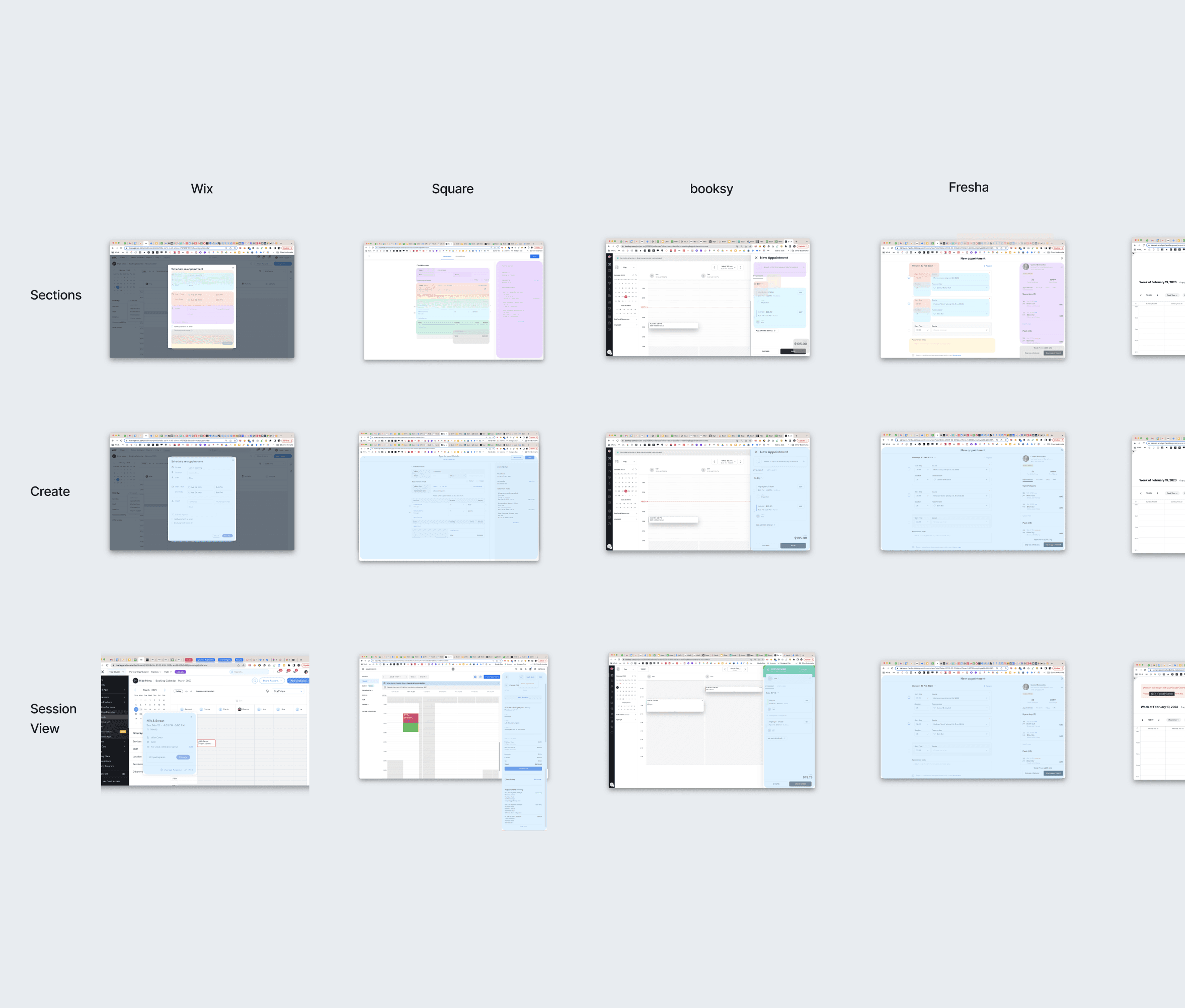 I reviewed direct competitors like Square, Booksy, Fresha, and Acuity, focusing on how their multi-service flows are structured — from selecting a client and services to handling overlaps, staff availability, pricing, and calendar display. This helped define the industry standard for efficiency and clarity.