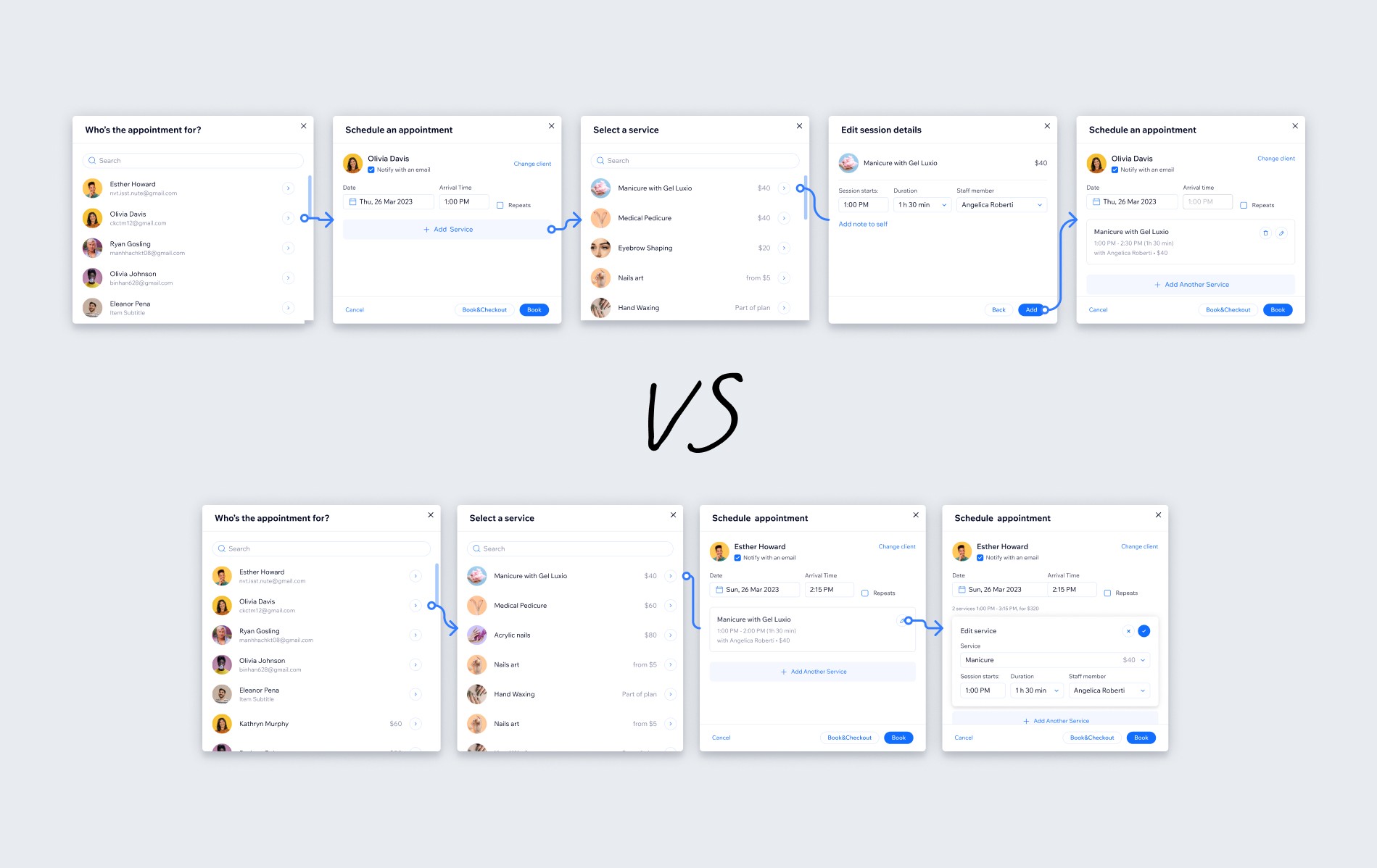 Business owners often need to book multiple services back-to-back for the same client — for example, a haircut followed by a manicure. In Wix’s old flow, this required filling out the same information multiple times. Rescheduling or managing payments for these linked services was also cumbersome.